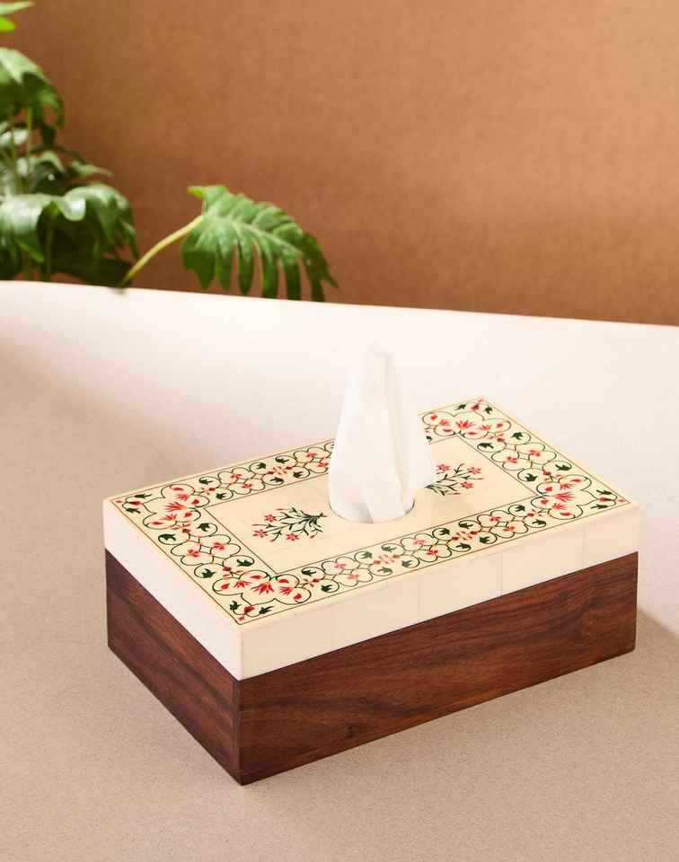 Faiza Craft Luxury Design Resin Tissue Box Holder Standard Meena Work Paper Stand Floral Pattern Price