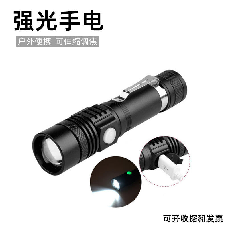 Fak T6 Led Flashlight Rechargeable Aluminum Alloy Outdoor Camping Portable Zoom Light With Usb Charging