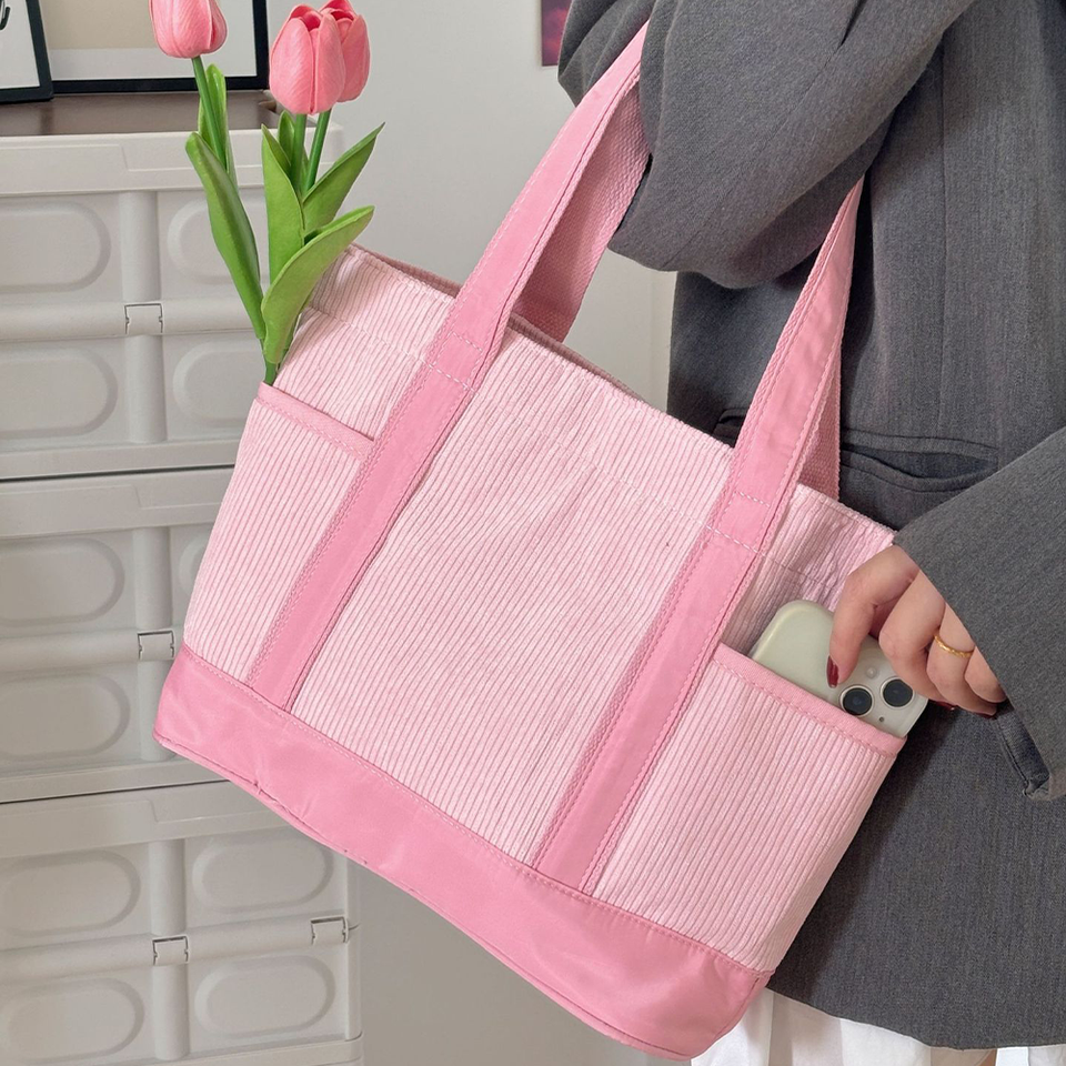 Fall Season New Trendy Large Capacity Pink Corduroy Shoulder Tote Bag Fashion Daily Use Custom Logo Tote Bag
