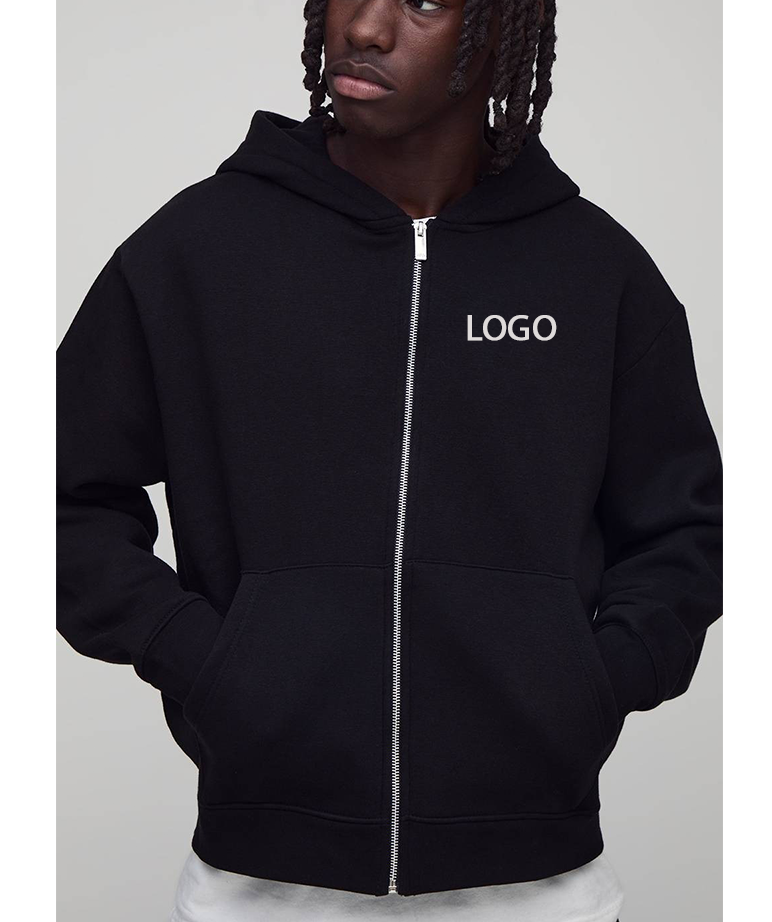Fall Winter Arrival Double Zip Men Black Hooded Sweatshirt Cycling Clothing Outdoor Hiking Drop Shoulder XL Heavyweight Hoodie