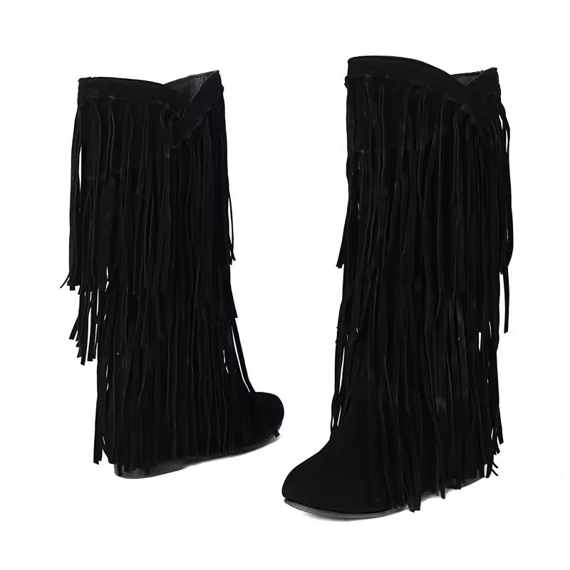 Fall Winter Fashion Custom Cowgirl Boot Women Shoes Knee High Fringe Big Size 48 Block Heels Suede Western Boots
