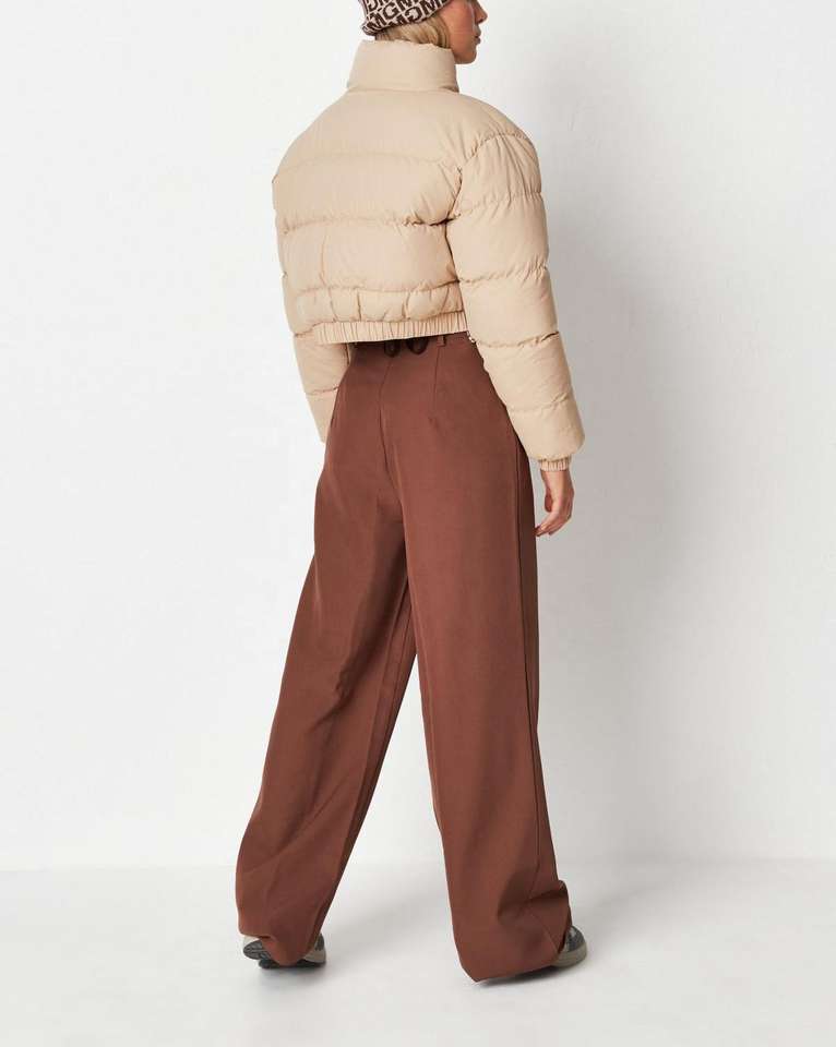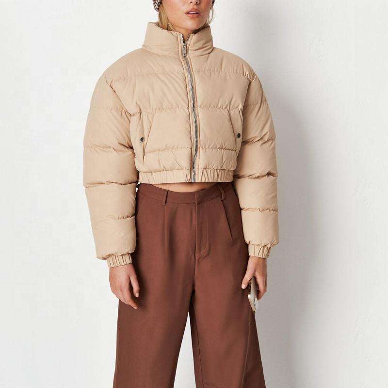 Fall Winter Women Beige Basic Zipper Coat Ladies Short Winter Top Thick Cotton Cropped Puffer Jacket