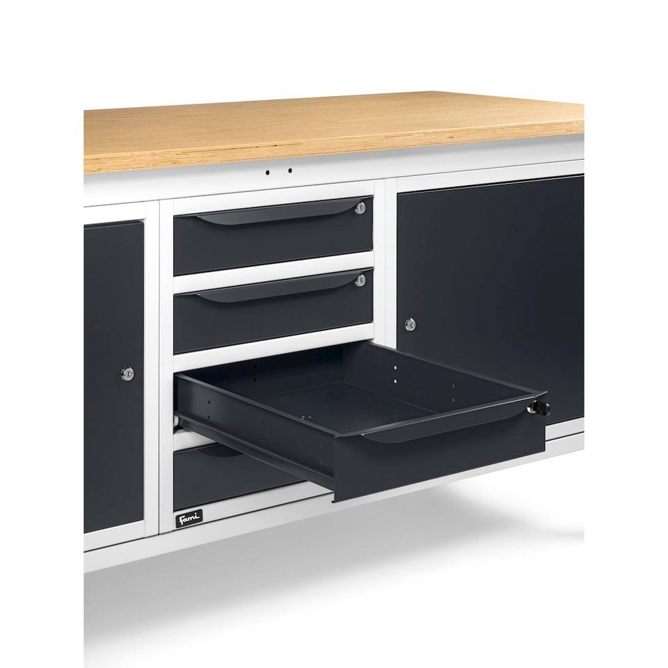 Fami 200cm wooden workbench with WORK2026 wall unit