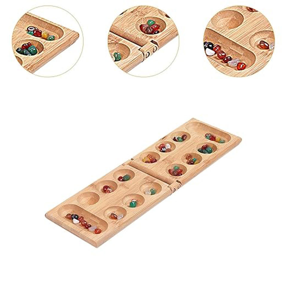Family-Friendly Foldable Wood Mancala Board with 48 Beads Traditional Party Game for Ages 7+ Teen Handmade Craft