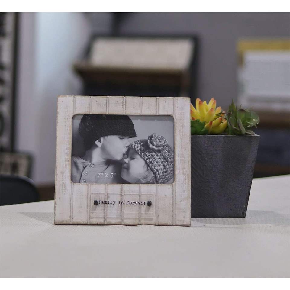 Family Is Forever Whitewashed Wooden Picture Frame 7x5 Inch Acrylic Front Tabletop Display Vertical Rectangular Design