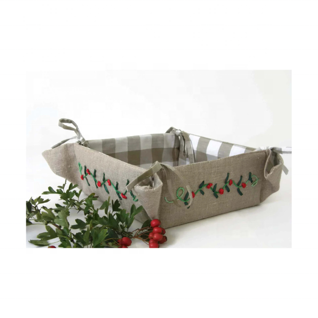 Family Sized 100% Cotton Plaid Bread Basket Embroidered Washable Eco Friendly Organizer Dining Table Kitchen Wholesale Available