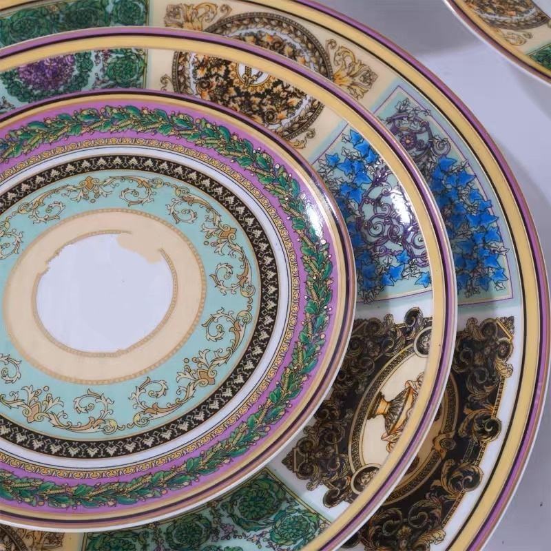 Family Tableware Set Western Food Plate Bowl Coffee Set Hot Sale of European Color Bone China Dinnerware Sets CLASSIC Giveaways