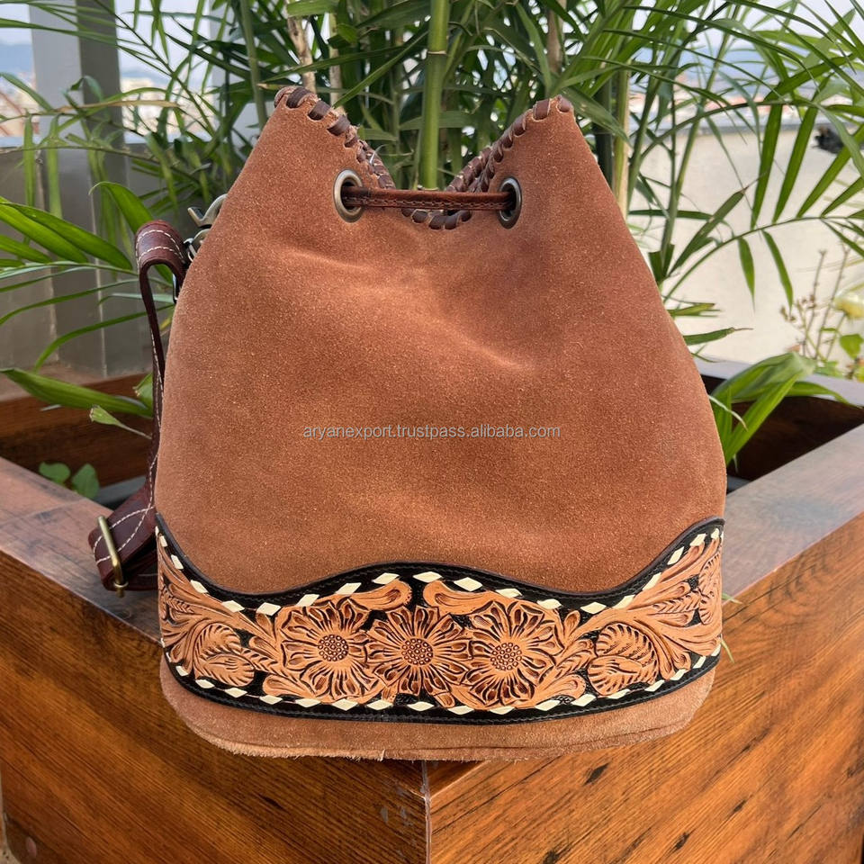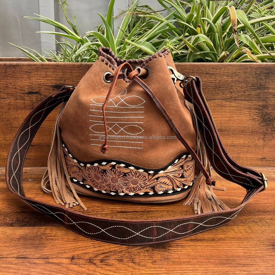 Famous Brand Design Boot Stitch Hand Tooled Suede Leather Women's Fringe Crossbody Bucket Bag Luxury Cow Leather Ladies Handbags