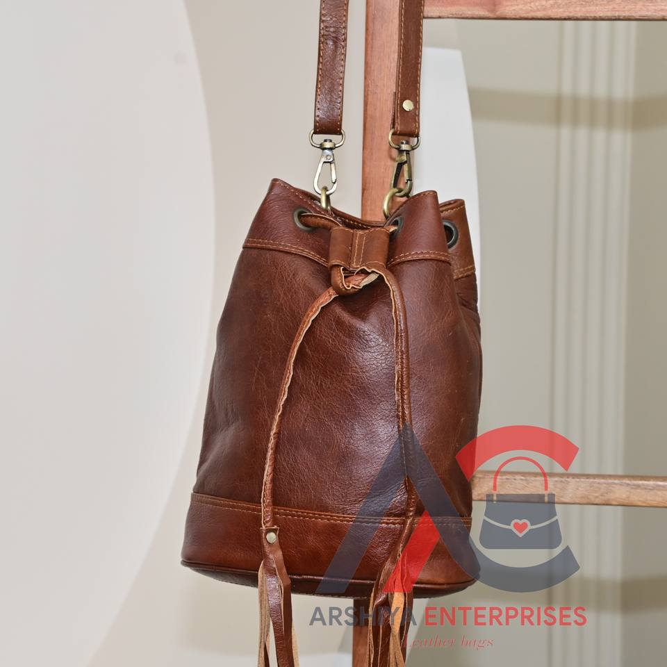 Famous Brand Design Full Grain Genuine Leather Shoulder Bucket Handbags for Women's Vintage Luxury Cow Leather Ladies Handbags