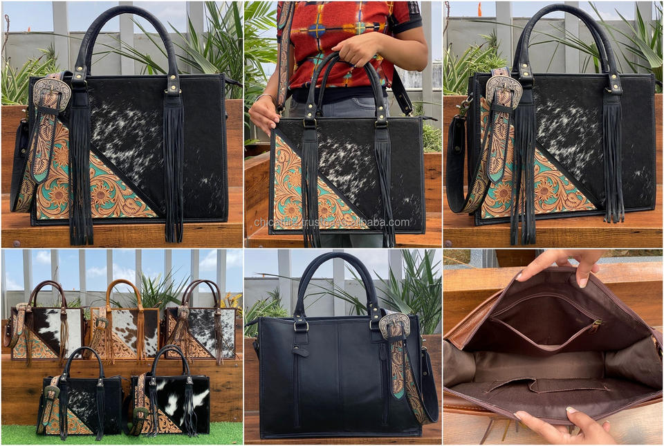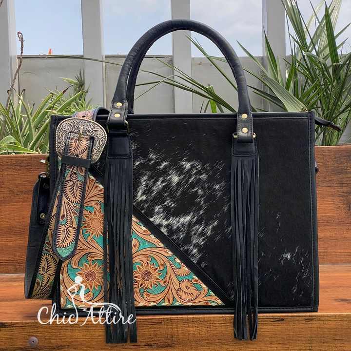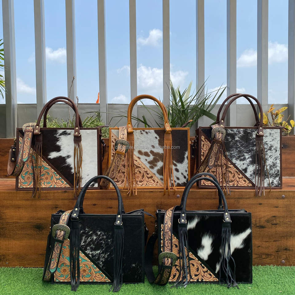 Product name:Hand Tooled Cowhide Leather Tassel Tote Bag