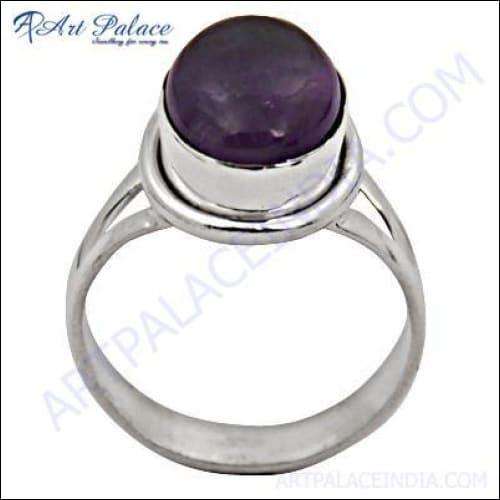 Elegant Fancy Silver Ring with Amethyst Gemstone Cabochon Famous Design High Quality Fine Rings