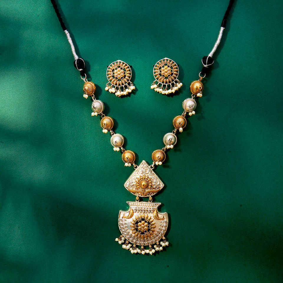 Famous Inspired Designer Oxidised Long Necklace Set With Two Tone Plating in Artificial Jewellery
