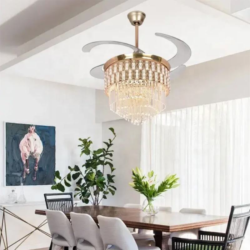 Fan light, ceiling fan light, crystal restaurant, intelligent frequency conversion, light luxury living room, bedroom, low noise