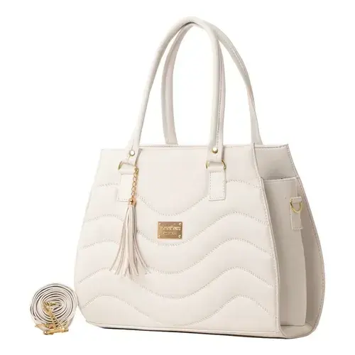Fana Alissa Women's Luxury Clutch Bag White PU Leather with Stylish Flap Pearl Decoration Unique M3769 Two Handles/Closure