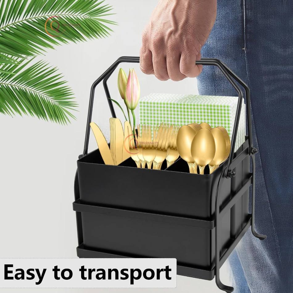 Fancy Black Galvanized Caddy Rack Classy Square Shape Handmade Kitchenware Storage Organizer High Quality Caddy For Home Decor