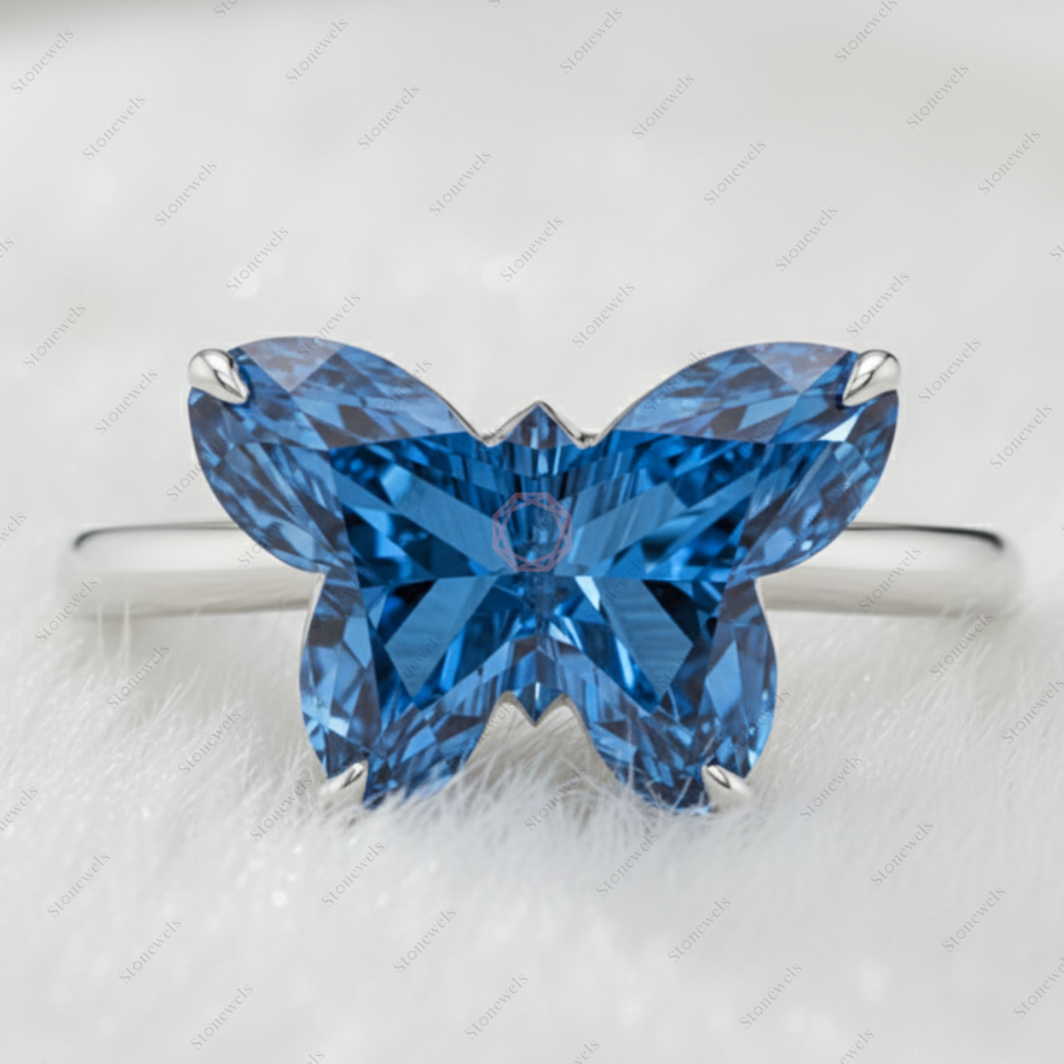 Product name:Solid Lab Grown Fancy Blue Butterfly Shape Diamond Ring