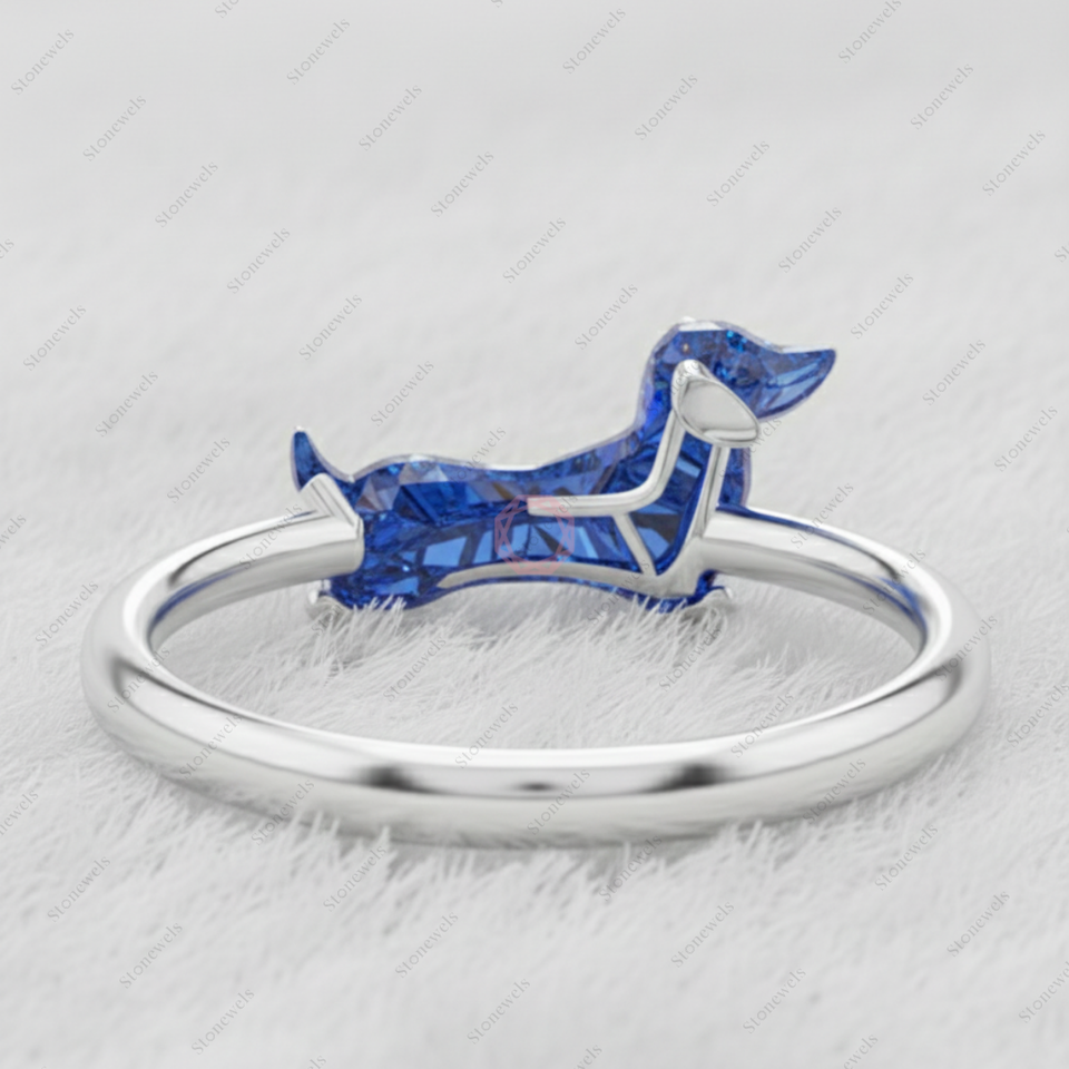 Model Number:Fancy Blue Dachshund Dog Shape Diamond Ring