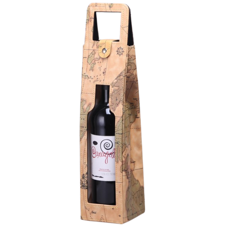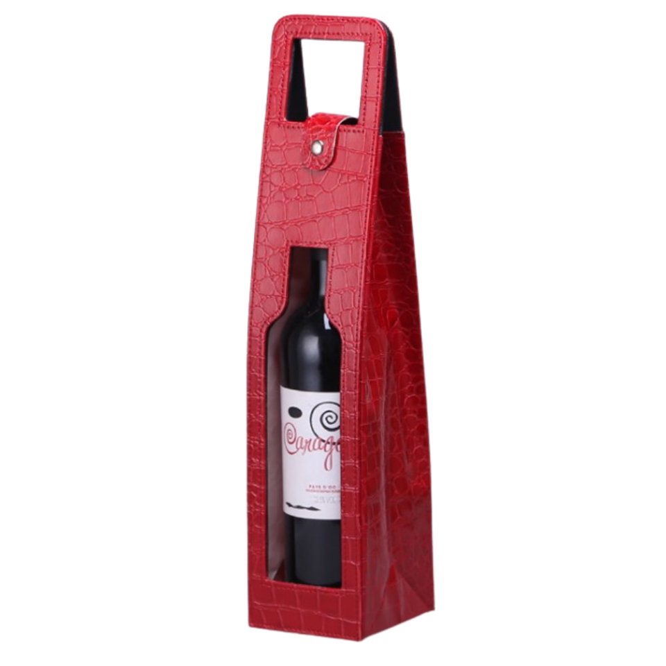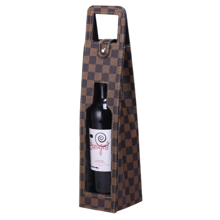 Fancy Custom PU Leather Fold Wine Bottle Carrier Business Gift Luxury Leather Wine Tote Bag