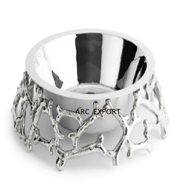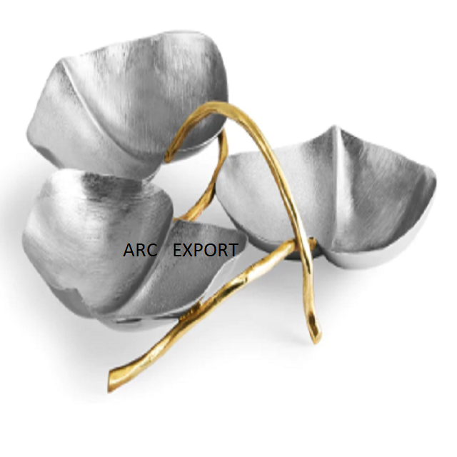 Fancy Decoration Silver Clear Metal Decoration Wholesale With Gold Leaf New Design Unique Serving Bowls for Wholesale Suppliers