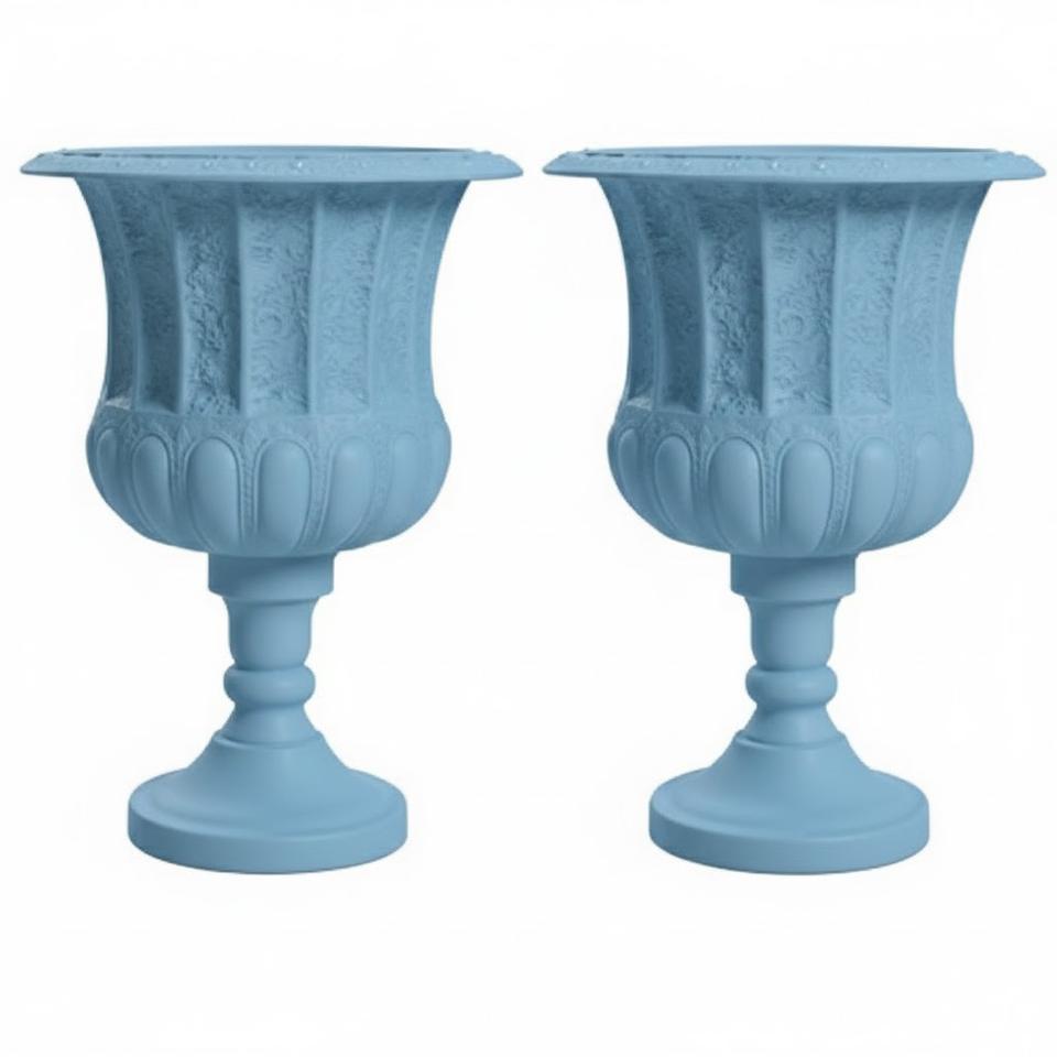 Fancy Decorative Blue Metal With Patten Garden Planter Tall Square Ornate Urn Style Outdoor Flower Pot Vintage Garden Decor Urns