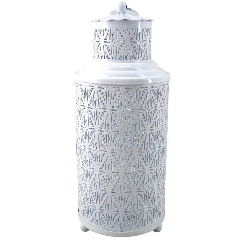 Handmade Set of 3 Medium White Iron PC Candle Lanterns Fancy Decorative Metal for Home & Garden Christmas Decoration