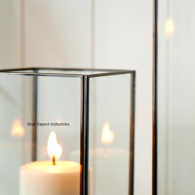 Fancy Design Black Metal Frame Clear Glass Candle Votive Square Glass Box for Home & Wedding Decor Candle Holder