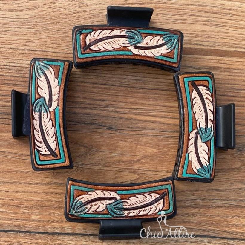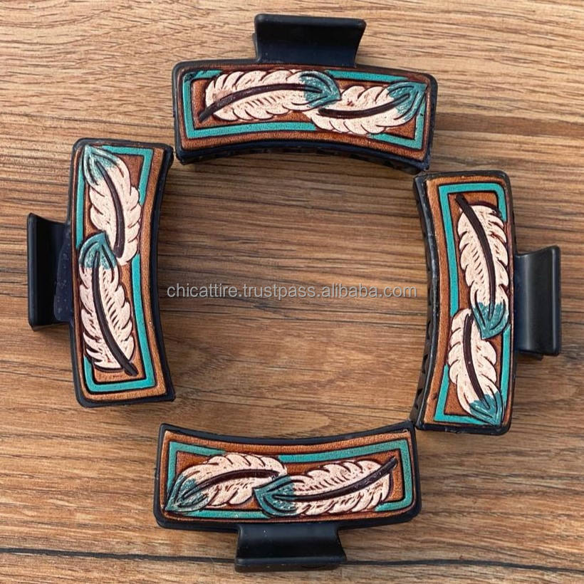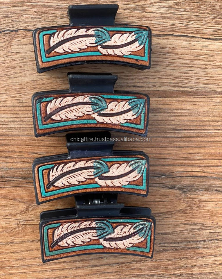 Fancy Design Girls Hand Tooled Leather Fashion Rectangular Hair Claw Clips for Women Genuine Leather Hair Claw Clips for Lover