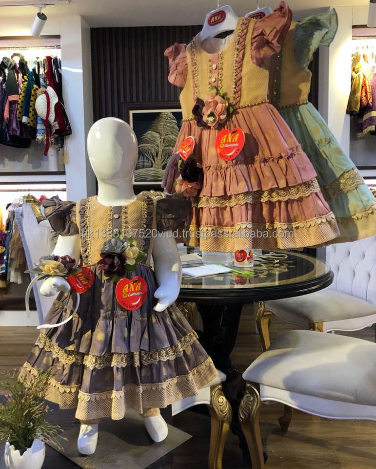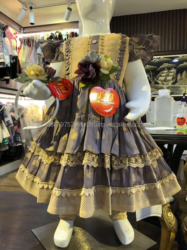 Fancy Design Gold Jacquard Cotton Dress Baby Girl New Design Fancy Dress