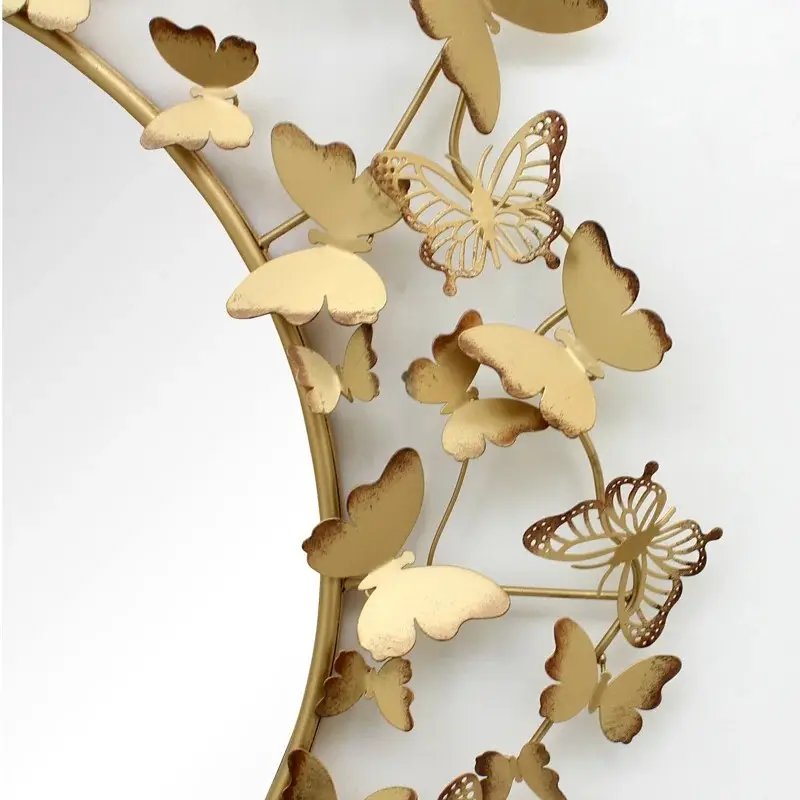 Fancy Design Gold Wall Mirror in Metal Leaf Shape Frame for Home Hotel Office Decorative Use Wall Mirror
