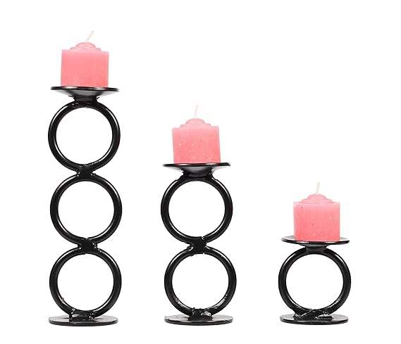Fancy Design Metal Black Tapered iron Candlestick Stand Holder Wedding Decorative Table Floating black Candle Holder Set of 3