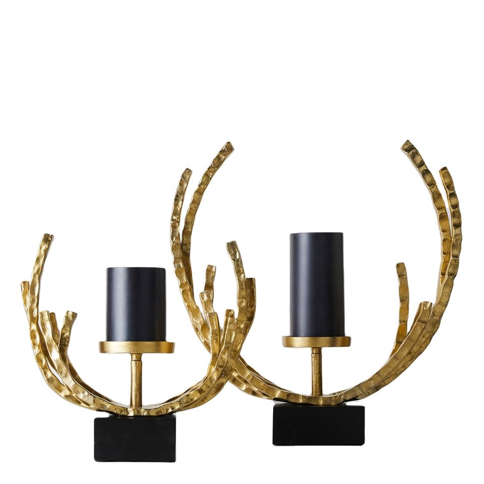 Fancy Design Metal Candlestick Holders Electroplated Gold Black Base T Light Candle Holder for Home and garden Decoration