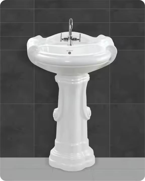 Fancy Double-Color Vitrosa Ceramic Pedestal Wash Basin Coffee Brown Lavabo Sink Set for Hospitals and Villas India Export