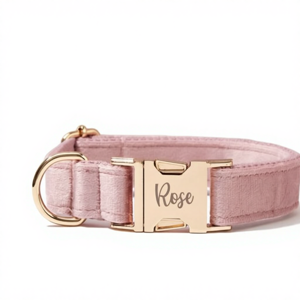 Fancy Dusty Pink Velvet Puppy Bowtie Set Personalized Handmade Engraved Dog Collar & Leash for Birthday Gift
