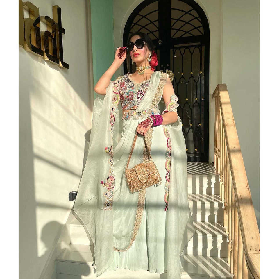Fancy Four-Piece Women's Set with Belt for Party Wear