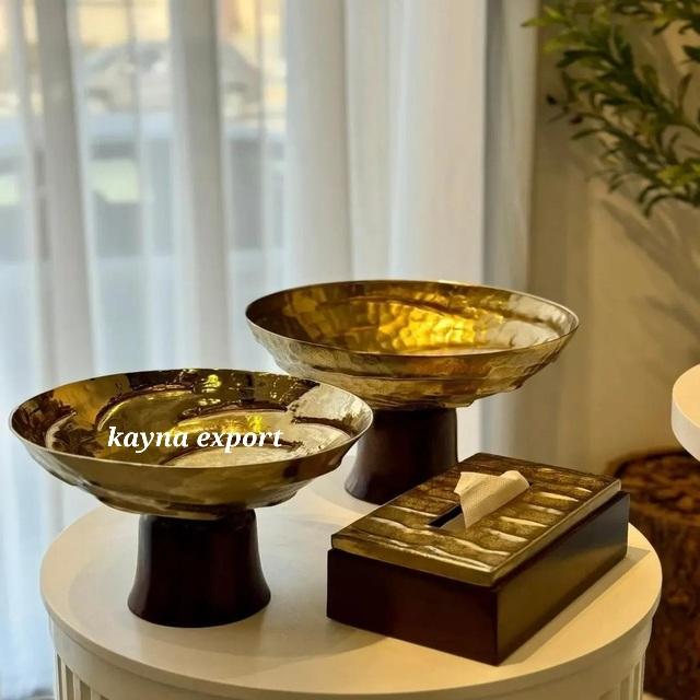 Fancy Fruit Serving Premium Modern Luxury Eco-Friendly Polished Custom Logo Party Bowl Stand Handcrafted Pattern Gold Finished