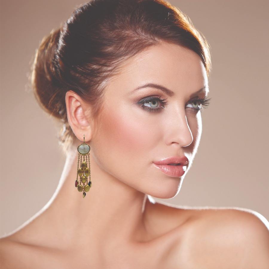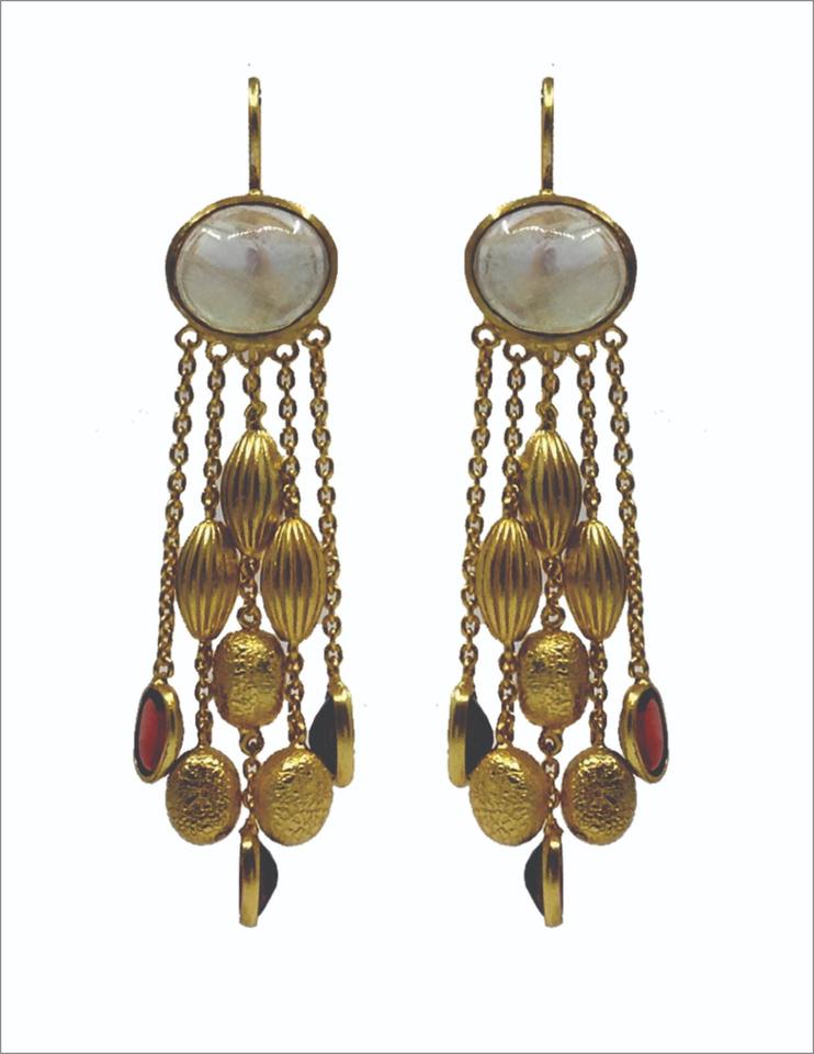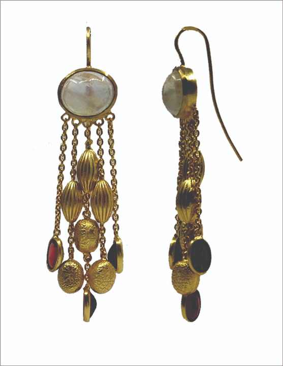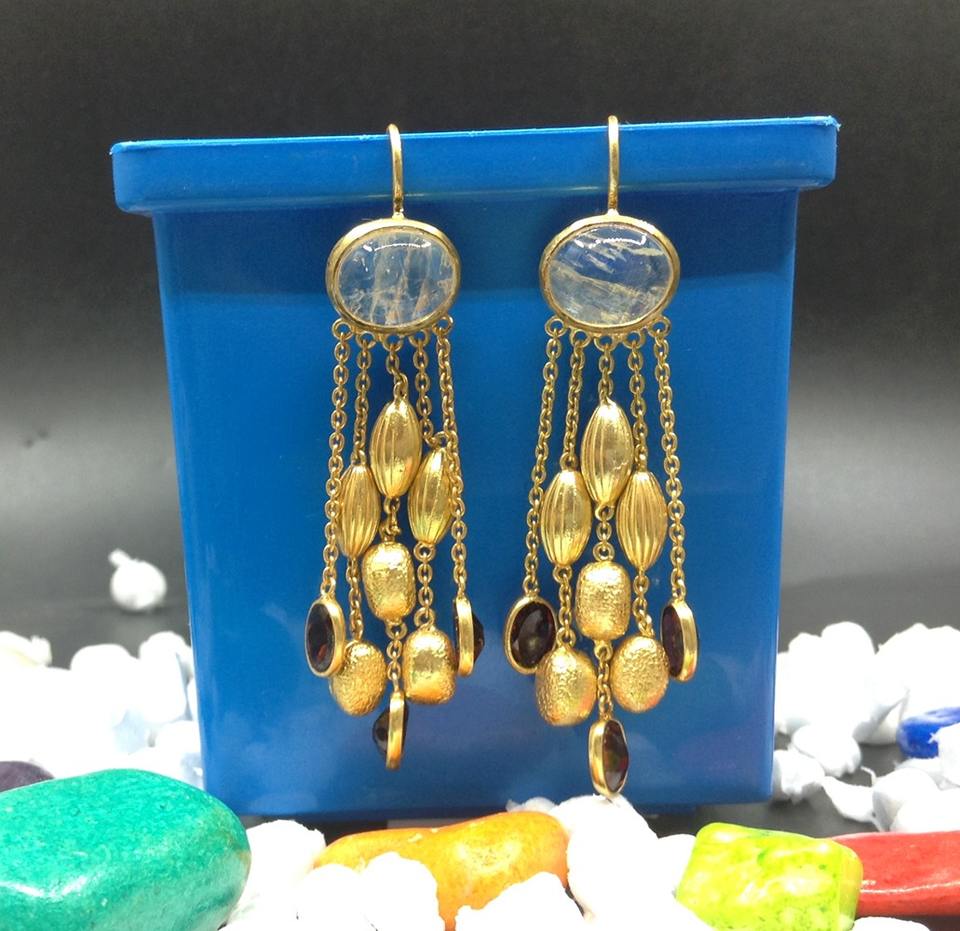 Fancy Gemstone Creative Moonstone Gemstone Garnet Sterling Silver Gold Plated Oval Shape Personality Chain Earrings
