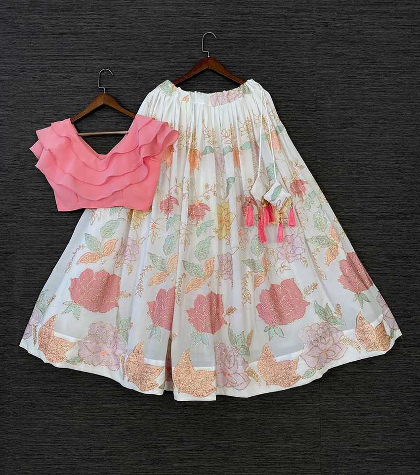 Fancy Georgette Sequence Thread Work Lehenga Choli Dupatta Semi-Stitched Party Wear Ethnic Garment Indian Pakistani Clothing