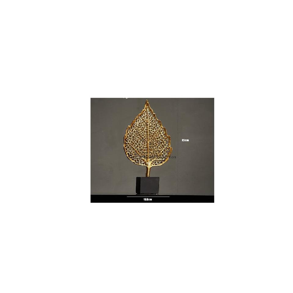 Fancy Leaf Shape Gold Color Mesh Design Sculpture With Marble Base Tabletop Designer Fancy Look Decoration Accessories Supplies