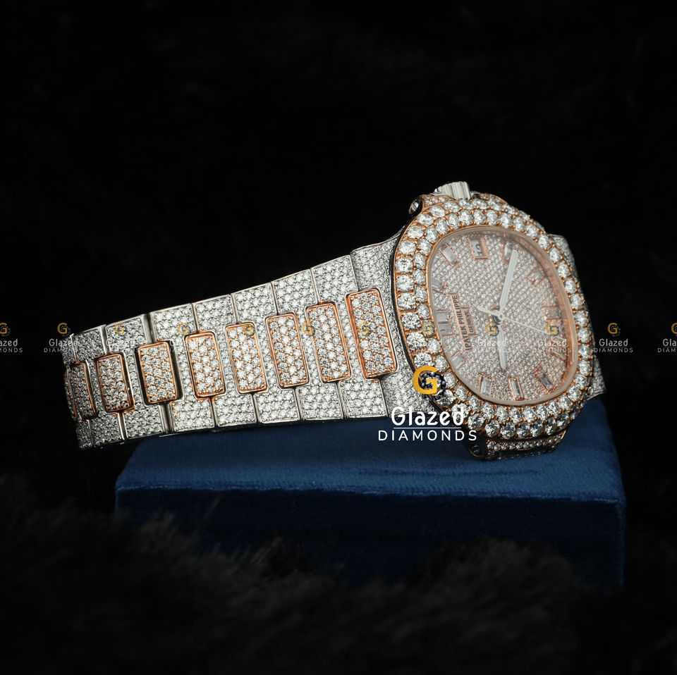 Fancy Mechanical Watch for Men Fully Bust Down in Round Brilliant Cut Lab Grown Diamonds in Stainless Steel