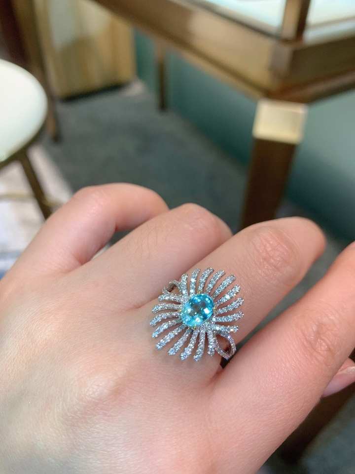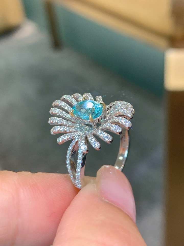 Natural Paraiba Tourmaline Ring Oval Neon Blue 0.82ct Colorless