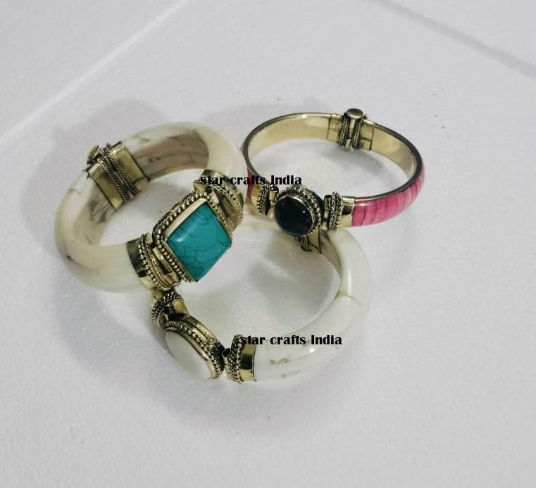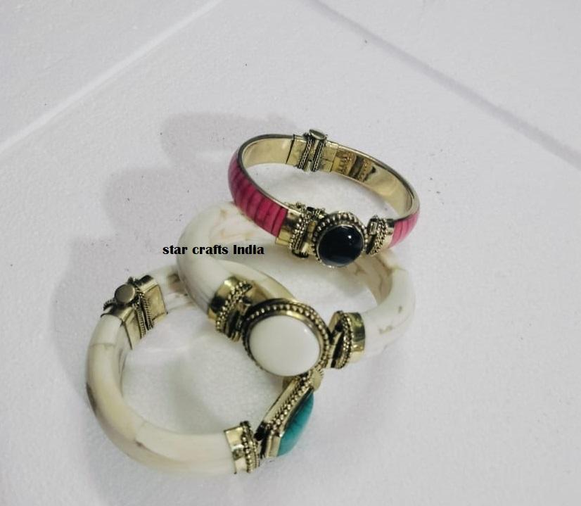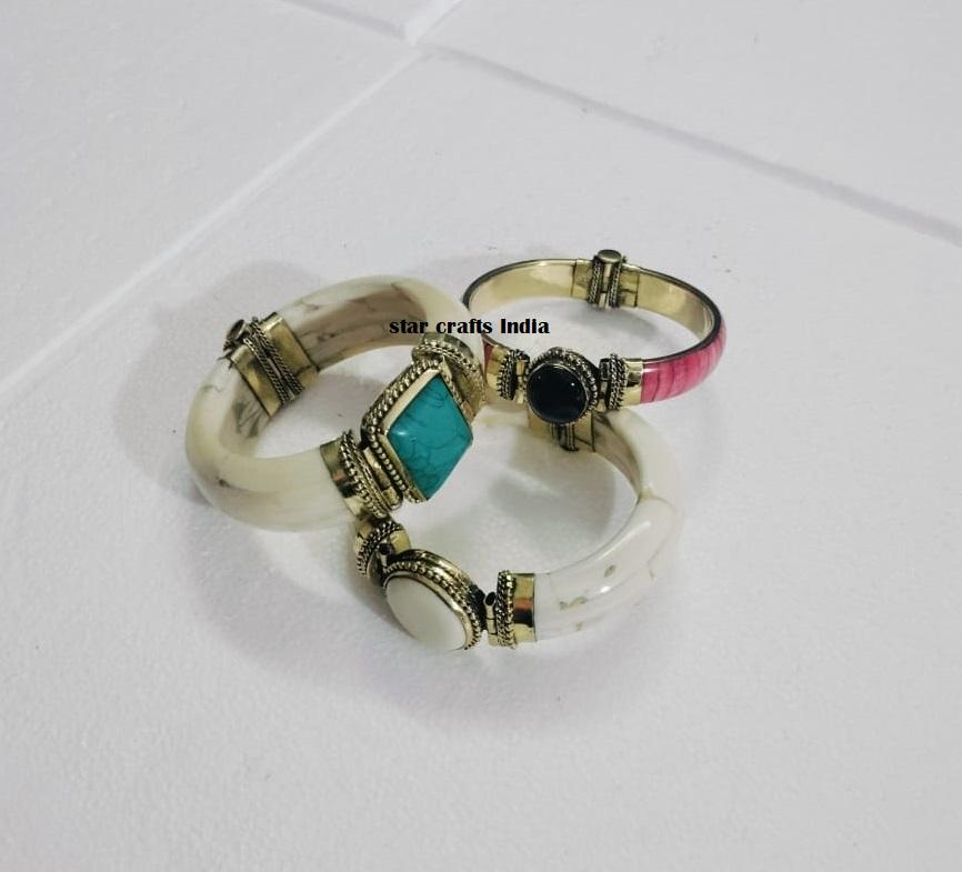 Fancy Naturel Stone with Brass & Bone Design Hot Selling Handmade Woman Hand Cuff Bracelet 100% Bone Made Bracelet