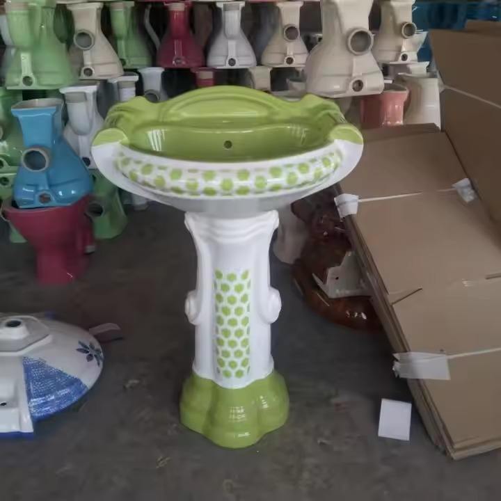 Fancy Pattern Round Shape One-piece Ceramic Floor Stand Wash Basin With Pedestal sterling ceramic washbasin