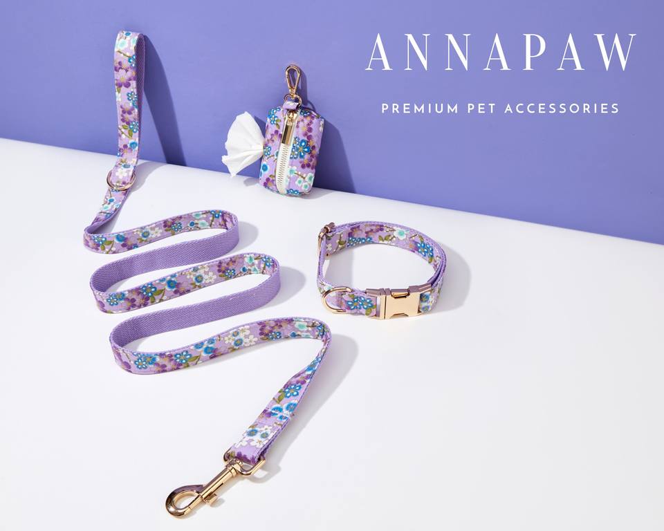 Fancy Purple Floral Leash,Custom Dog Set,Engraved Puppy Collar Bowtie For Wedding Gift,Free Name Engraved