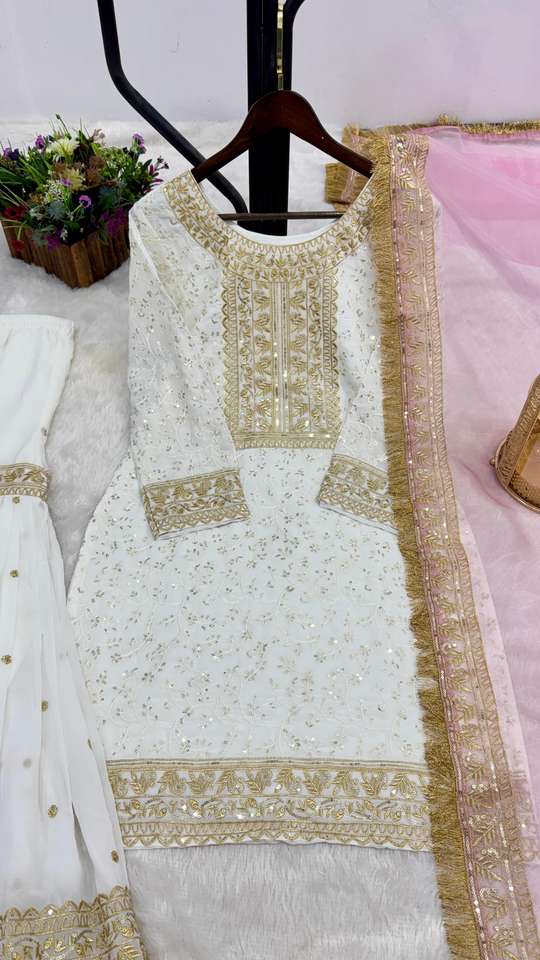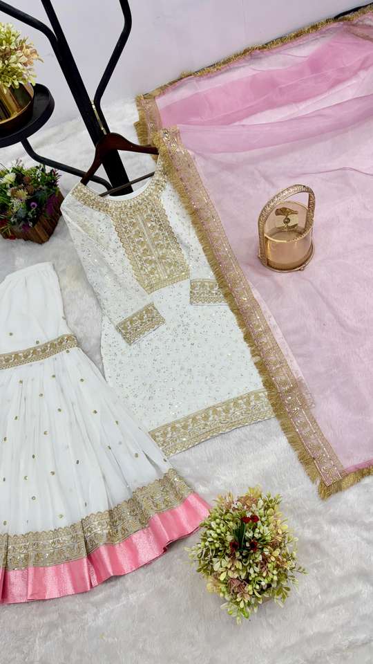 Product Name:Faux Georgette Sequence Embroidery Top Sharara With Dupatta