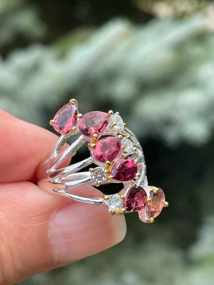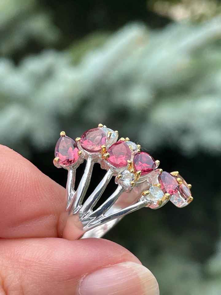 Product name:Rubellite Tourmaline Blue Topaz Multi Line Band Ring