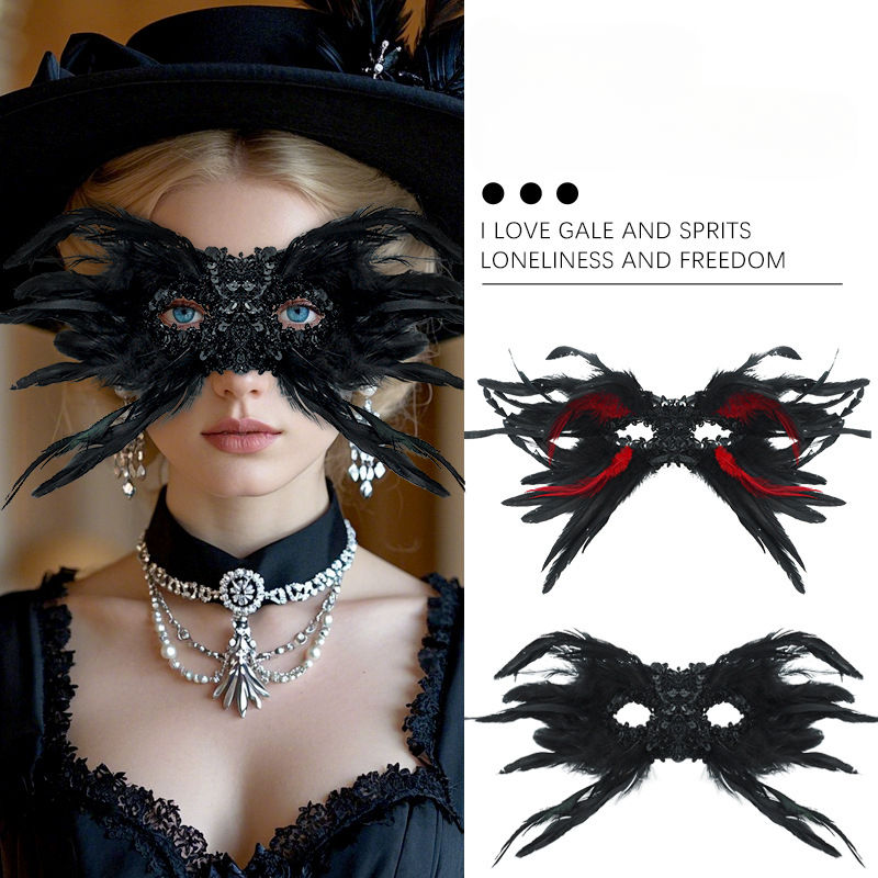 Fancy Sequin Halloween Feather Large Horn Cosplay Halloween Eye Party Supplies Fancy Prom Gothic Unisex