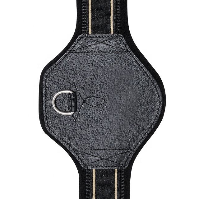 Fancy Stitch Padded Long Girth High Quality Tanned Leather with Snap and Elastic with Stripes in Your Choice of Leather Color