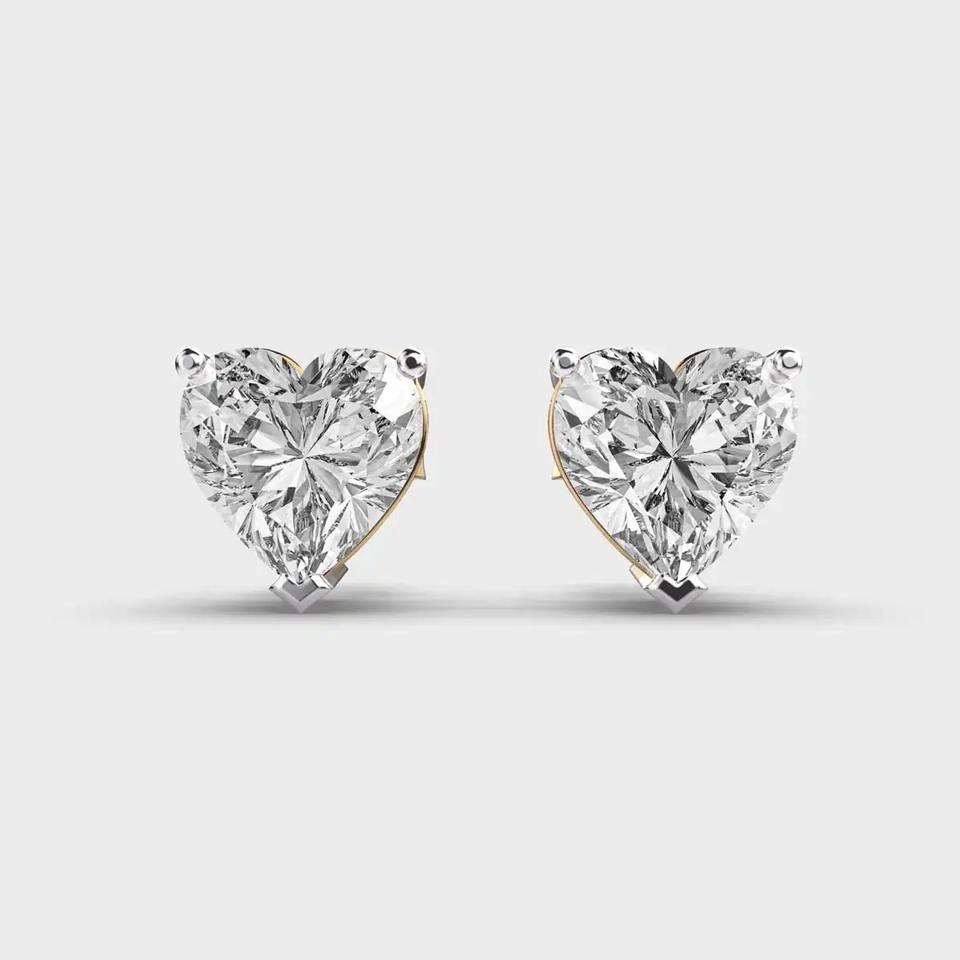 Fancy Style 14K Solid Gold Stud Earrings Heart Cut Lab Grown Diamond Earring for Birthday Parties and Gifts