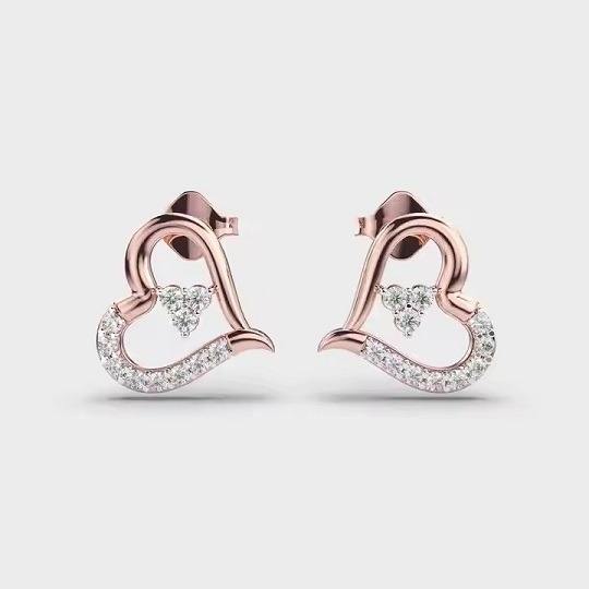 Fancy Style 14K Solid Gold Stud Earrings Heart Cut Lab Grown Diamond Earring for Birthday Parties and Gifts