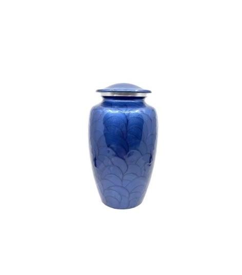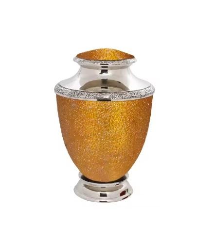 Fancy Style Eco-Friendly Aluminium Art Deco Cremation Urn with Hand Carved Orange Silver Leaf Design for Human Ashes